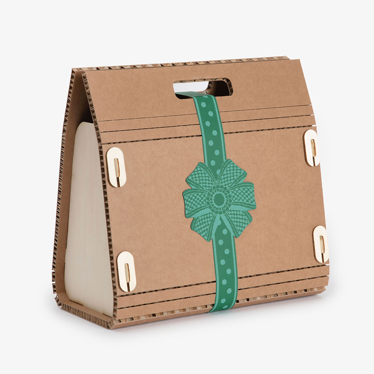 La nostra borsa avana con coccarda rappresenta un’interpretazione elegante e distintiva della classica confezione regalo. La sua forma geometrica, netta e precisa, cattura immediatamente l’attenzione, trasmettendo un’eleganza senza tempo che si combina armoniosamente con il tocco di grazia della coccarda.