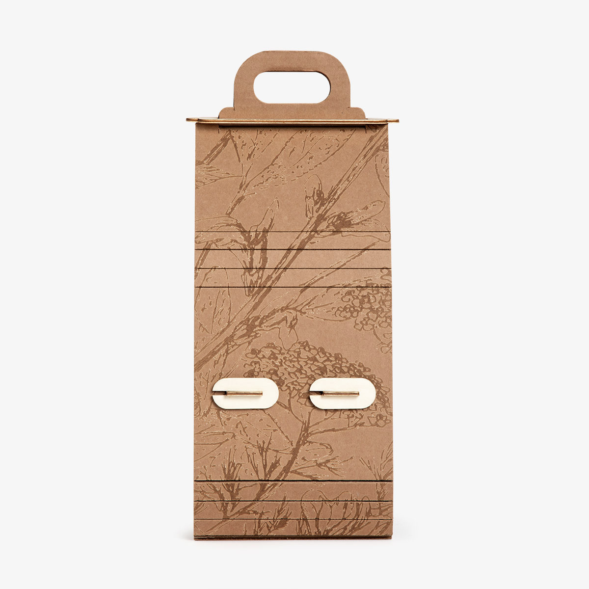 Disponibile in cartone avana naturale o nella versione Black and White project 100% riciclato, GHOST valorizza il contenuto senza sovrastarlo, lasciando spazio alla pura essenza del vino.
