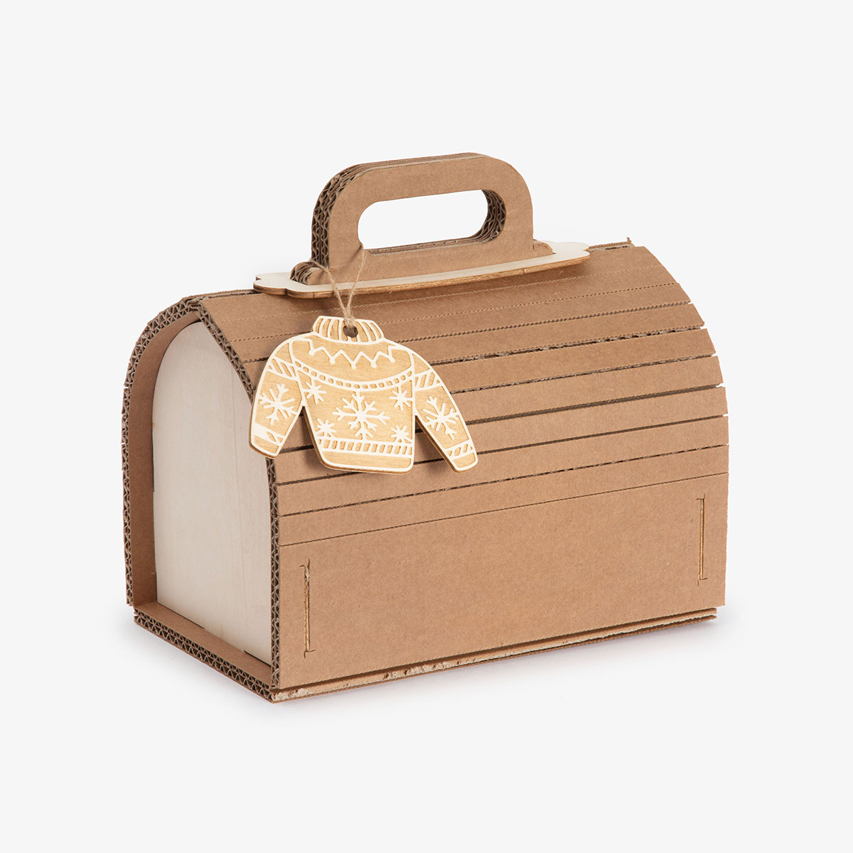 Il TAG a forma di maglione inciso con precisione laser su pezzi di legno riciclati da scarti industriali, è l’elemento distintivo che aggiunge un tocco di autenticità e naturalezza alle tue confezioni.